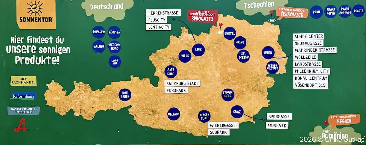 Sonnentor bietet bei den Betriebsführungen eine breite Palette von der Kostprobe über einen Film hin zu einem Rundgang durchs Lager mit Einblick in die Produktion und Verpackung. Dabei ist besonders das Lager der Kräuter und Gewürze eine Geruchsexplosion, die man nicht versäumen sollte.