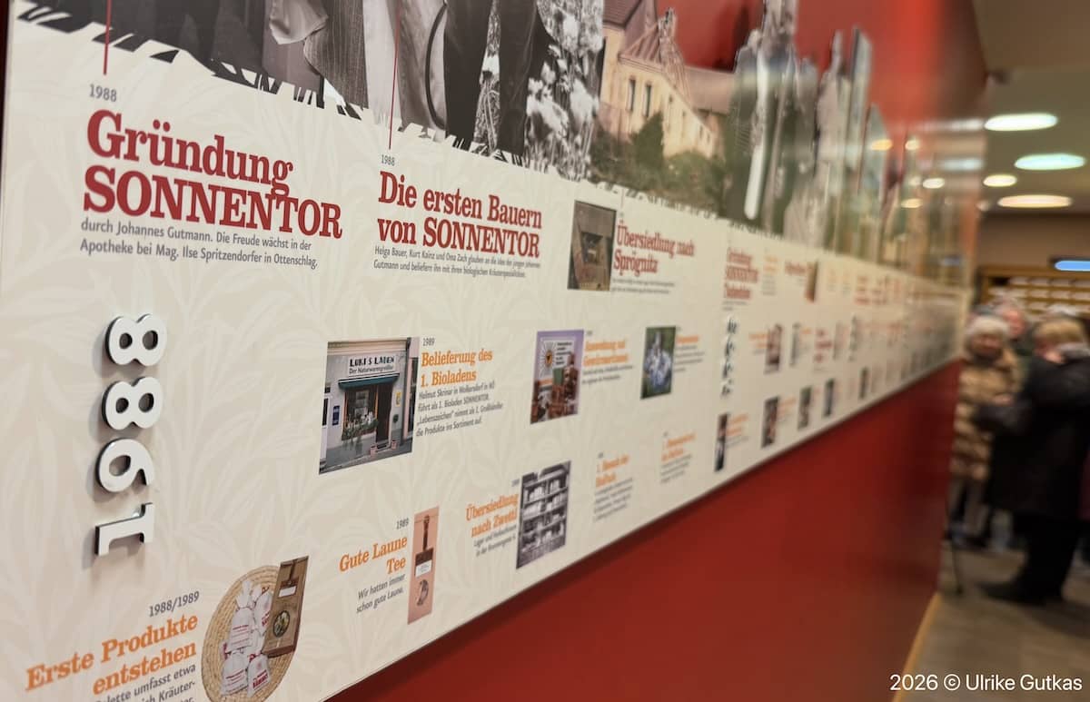 Gegründet 1988 von Johannes Gutmann mit nur drei Bauern als Zulieferer hat sich Sonnentor inzwischen zu einer Firma mit weltweitem Einkauf, mehreren Produktionsstandorten und einer großen Anzahl an Verkaufsstellen gemausert. Weltweit hat Sonnentor rund 550 Mitarbeiter:innen und über 1000Anbaupartner:innen. Für sein Tee- aber auch Gewürzsortiment ist Sonnentor inzwischen nicht nur in Österreich bekannt. Die meisten Verpackungen wie Cellophan statt Plastik und biologisch abbaubare, metallfreie Teebeutel können kompostiert oder zumindest umweltfreundlich entsorgt werden.